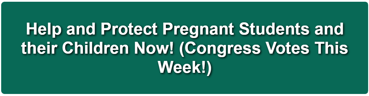 YES on S.3627/H.R.6359 –The Pregnant Students' Rights Act (S.3627/H.R.6359), a bill to make sure that colleges and universities readily provide information to their students on the rights, accommodations, resources, and services available to them to help them carry their baby to term and succeed as a parenting student.Tell your representative now to vote “Yes” on the Pregnant Students’ Rights Act to help young women find the support that exists for a bright future for both themselves and their babies. Next Retreat: